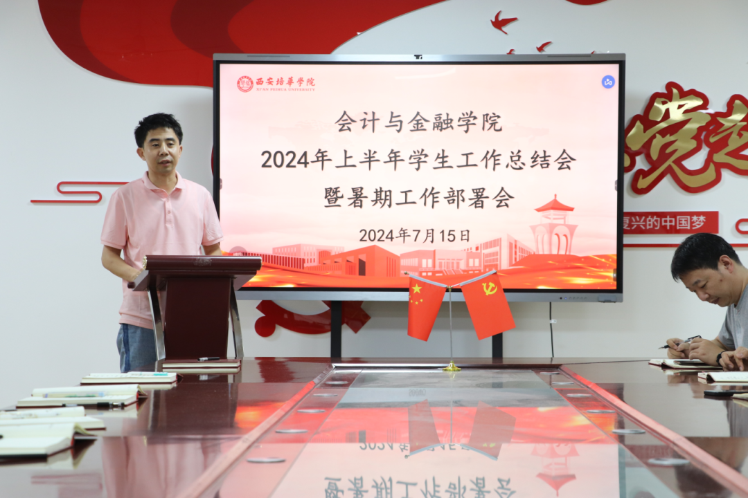 2024 年 7 月 15 日下午 16 点,会计与金融学院于 2115 会议室隆重召开了 2024 年上半年学生工作总结会暨暑期工作部署会。此次会议意义重大,旨在回顾过去半年的工作成果,总结经验教训,并为即将到来的暑期工作做好全面规划和部署。参会人员包括会计与金融学院党委书记兼行政副院长刘斌、党委副书记高乐,以及全体辅导员。