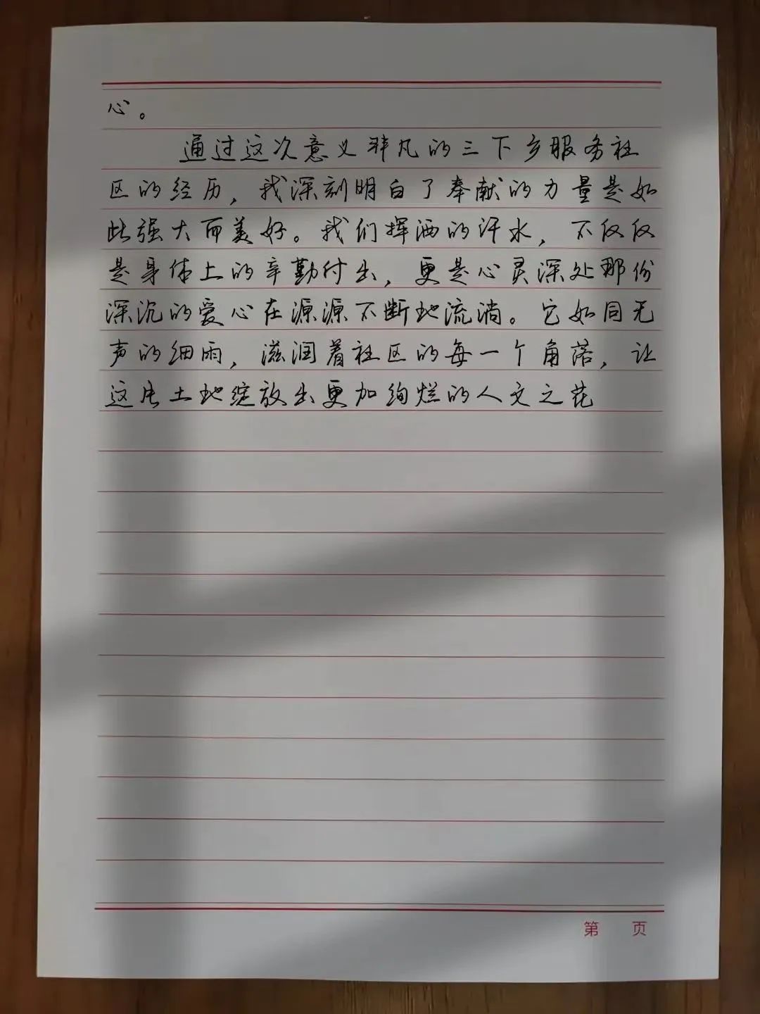 “挥洒汗水,服务社区”三下乡活动对于温澜潮生社会实践队的队员意义非凡。它宛如一座璀璨的灯塔,照亮了队员们前行的道路,为他们的人生增添了一抹绚丽的色彩。在这段难忘的经历中,每个实践队队员都因为各自不同的所见所闻、所做所感,有了自己发人深省的感悟。