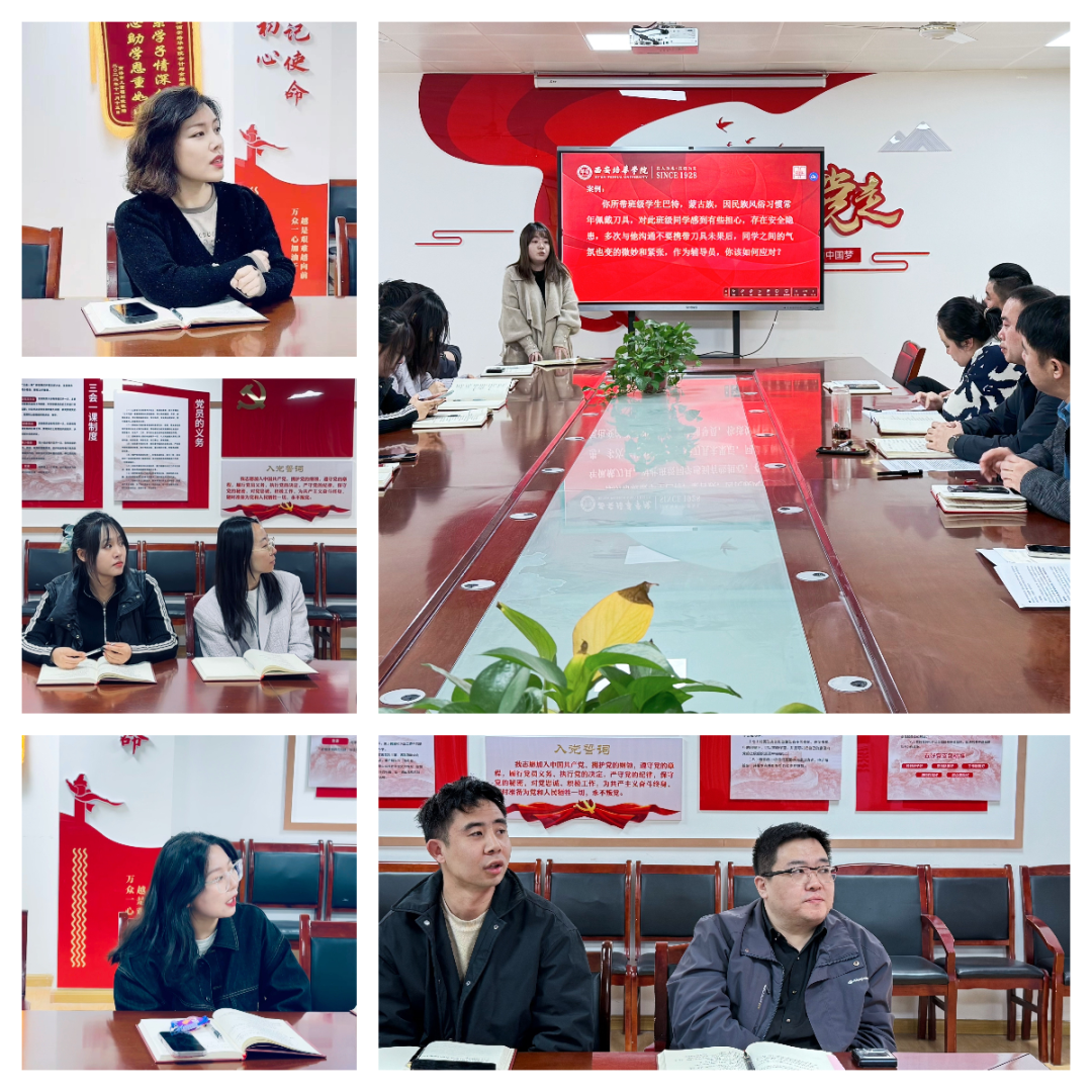 在案例分析环节,与会辅导员围绕“少数民族学生教育管理”主题展开深入研讨。案例涉及少数民族学生的风俗习惯差异、校园适应性问题。辅导员逐一讲解自己的解题思路,随后杨婷婷老师结合案例解析与大家分享了参加辅导员训练营的心得体会。最后刘斌院长结合中央关于“宗教工作中国化”的重要指示,就如何引导学生正确认识民族文化与宗教信仰、如何在尊重差异的基础上促进民族团结等问题进行了重点强调,辅导员要严格落实教育与宗教相分离的原则,坚决防范宗教渗透,同时通过主题班会、文化交流等活动,增强学生的中华民族共同体意识。