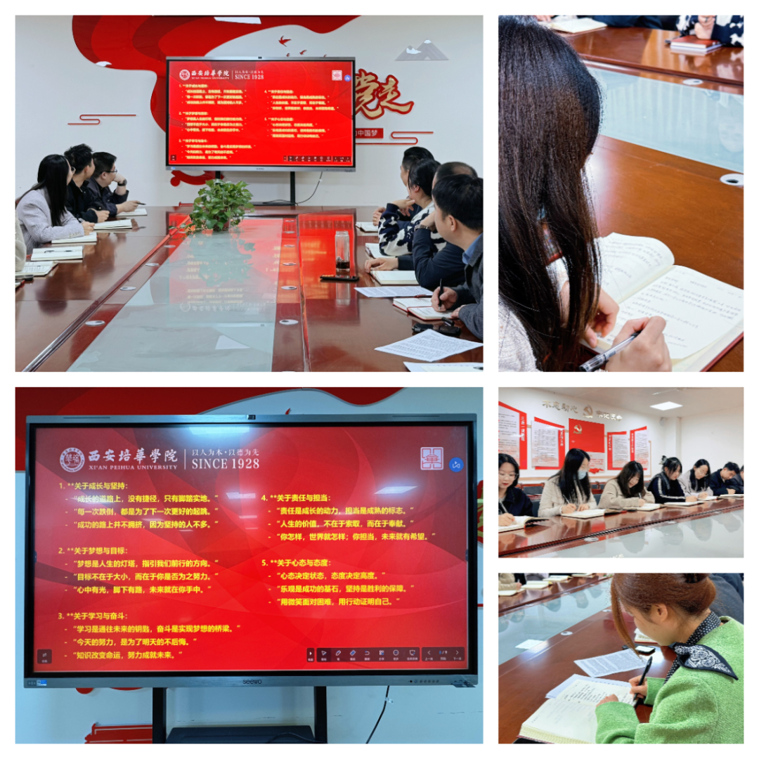 “三笔字”是辅导员的基本职业素养之一。会上辅导员一起研读名言金句并进行摘抄。这项基本功训练既夯实了辅导员专业素养,又潜移默化地培养了审美能力。规范的板书可以提升职业形象,同时也可以培养耐心细致的工作作风,契合辅导员日常事务管理需求。