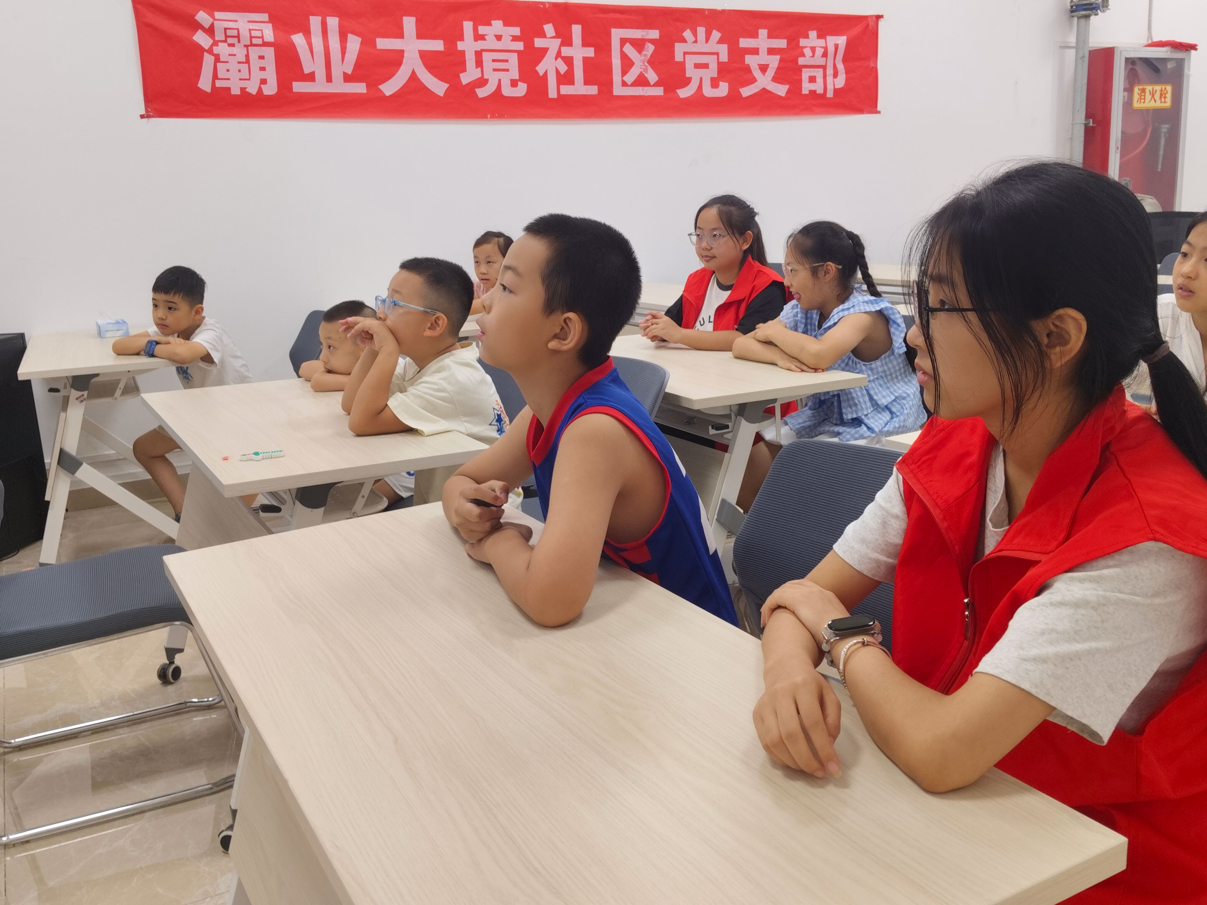 7月15日下午,灞业大境社区托管中心的教室内气氛热烈,楮心筑梦队志愿者在此开展防溺水安全课程。30余名小朋友参与其中,在成员刘佳遥的带领下,通过案例讲解、情景模拟和互动游戏等形式,系统学习溺水预防与急救知识,为即将到来的暑期安全增添保障。