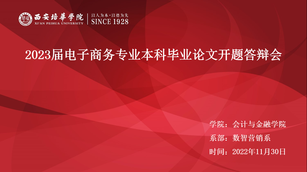 2022年11月30日,电子商务专业举行线上毕业论文开题答辩。为保障本次答辩工作顺利开展,数智营销系制定了详细的答辩方案,前期严格做好答辩资格审核和安排,两个专业按比例选取学生进行答辩。此石妍、张小妮、王艳、樊晓军分别担任各组答辩组长,线上和线下答辩严格遵循相关程序和质量标准。答辩过程分为三个环节。学生根据评委的意见和建议进一步完善和修改开题报告,以期顺利完成毕业论文。答辩后期学生们表示将会继续阅读文献,深入行业企业一线,进一步明晰研究目标和方向,明确研究思路和方案开题答辩结束后,相关指导教师就答辩中存在的问题与学生进行讨论复盘,完善论文相关内容,梳理研究思路与方法,整个答辩过程也是头脑风暴、集中交流的过程,参与答辩的同学均表示收获满满。