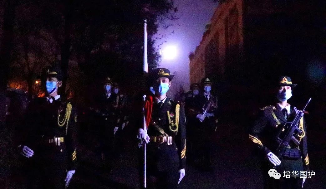 2022年11月21日,培华国旗护卫队来到南门举行升旗仪式,感谢医学院党委副书记兼服务站站长何丽 体育学院辅导员杜晓婷,体育学院辅导员丁景阳 岁暮天寒,寒风侵肌。身姿如松,坚毅挺拔,每当此时,熟悉的南门总会迎来如期而至、风雨不误的国护队员。晨光微起,日见东方。当刀手的口令声响彻南门时,当升旗队列齐步迈进时,当嘹亮的国歌声响起时,凛冽刺骨的寒风也无法冲散队员们的热情,队员们心中的自豪之情也油然而生。接续不断,精神永存。这是大一新队员参加的第二次升旗仪式,相信在他们心中已经燃起了信仰的火焰,待经历训练后相信他们也能够穿上礼服挥洒汗水。