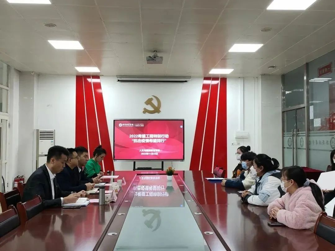 2022年11月24日,人文与国际教育学院在格物楼第四会议室举办2022希望工程特别行动“抗击疫情希望同行”资助仪式。参加本次仪式的嘉宾有:西安培华学院党委学工部副部长、学生服务中心副主任姚斌、人文与国际教育学院党委书记兼副院长南兵,党委副书记韩斌。本次资助仪式由我院学生干事成丽主持。会议伊始,姚斌副部长致辞。会议最后,南兵副院长发言。习近平总书记强调,让青少年健康成长,是国家和民族的未来所系。如今国家努力为青少年提供新助力、播种新希望,同学们也要坚定理想信念、严于律己、锐意进取,回报社会,回报祖国,为实现中华民族伟大复兴做出自己的贡献。