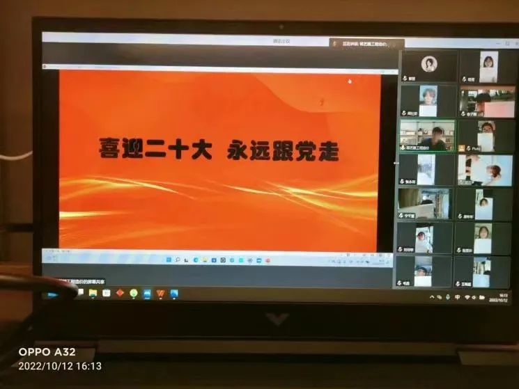 2022年10月14日,建筑与艺术设计学院团委在线上组织“喜迎二十大 永远跟党走”主题团日活动。中国共产党第二十次全国代表大会是进入全面建设社会主义现代化国家、向第二个百年奋斗目标进军新征程的重要时刻召开的一次十分重要的会议,是党和国家政治生活中的一件大事。作为新时代青年,我们必将“以志为先,以新为径,以苦为食”,以青春之名,喜迎中国共产党第二十次全国代表大会的胜利召开,在新时代不懈奋斗,建功立业。新时代青年一定要坚定跟党走的信心决心,把自己的人生目标与祖国、时代的命运联系起来,树立远大理想,培养良好品德,勤奋学习、立志成才,努力为全面建设社会主义现代化国家、全面推进中华民族伟大复兴。