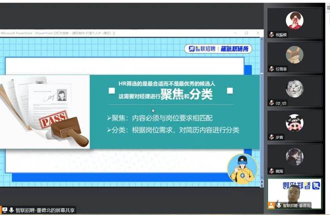 2022年9月21日晚19点至21点,建筑与艺术设计学院举办线上就业指导讲座。此次就业指导讲座特邀智联招聘金牌讲师,高级人力资源讲师董德北为毕业生们进行“简历制作与面试技巧”的专题讲座,讲座由学院辅导员邢杨主持,学院毕业生辅导员石戎睿星、关小芳、李煜,2023届应届毕业生参加了本次讲座。此次讲座在同学们的掌声中圆满结束,董老师讲解的简历制作技能和面试技巧,丰富了同学们的就业求职知识,增强了同学们的职场竞争力,为准毕业生们未来成功就业奠定了深厚的基础!