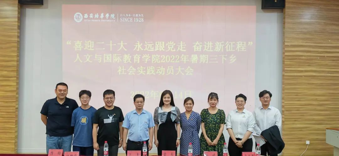 2022年6月14日16:30,人文与国际教育学院委员会于在J101召开“喜迎二十大,永远跟党走,奋进新征程”暑期“三下乡”社会实践活动大会,出席本次活动的有人文与国际教育学院常务副院长梁蕊,党委书记兼行政副院长王飞,西安培华学院团委副书记杨媛,人文与国际教育学院团委书记朱林鹏,团委副书记赵梦莹,团委副书记曹帅以及各班辅导员、学业导师,以及各暑期“三下乡”社会实践活动队伍负责人。本次动员大会为同学们开展暑期“三下乡”社会实践活动奠定良好基础。后期学院将助力学生充分挖掘和利用学院资源、家乡资源,以实际行动积极响应习近平总书记对青年人的号召开拓人生、奉献社会。