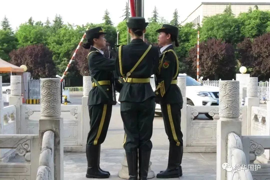 2023年5月19日,国旗护卫队来到南门进行降旗仪式。欲落的夕阳染红了半边天,霞光洒下来,此刻队员们身上的迷彩显得格外耀眼。降旗队列眼神坚定,整装待发。“敬礼!”队员们庄严肃穆,面向国旗敬礼,神圣的时刻在心灵深处激荡。道路是曲折的,前途是光明的。在路上多花点时间到达才更有意义,通往南门的路,也许漫长,但总有人与你并肩同行;在南门的日子,也许枯燥乏味,但坚持过后收获的是“忠诚、团结、责任、奉献”的精神。那些单调重复里的执着,那些刻进骨子里的信念,那些风雨里保持的热爱,构筑成生动又鲜活、炽热而永远的国旗护卫队。纪律作风,组织建设,是国旗护卫队的重要任务之一。