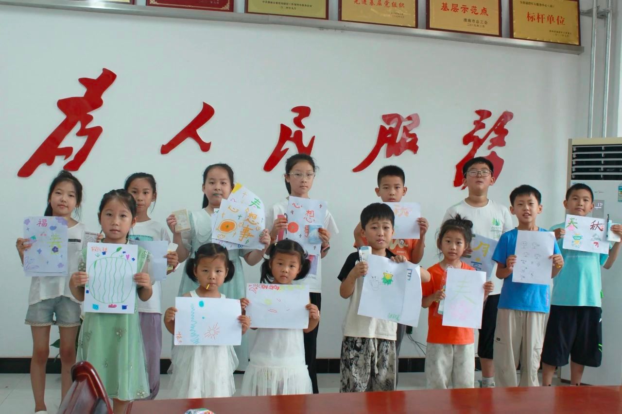 志愿队以“绘画+文字”为载体,开展“文字绘画课”活动,引导小朋友们将字与画相结合,让他们感受文字的魅力,例如心想事成,成和“橙”发音相同,就可以画一个橙子,春花夏水秋果冬雪人,运用不同的意象来表达字,丰富了小朋友的想象力。志愿者还引导大家将姓氏融入画——姓“何”的小朋友画荷花,学“hé”的发音;姓“林”的绘树林,练“lín”的咬字。最后,志愿者让孩子们画完后用普通话介绍自己的作品。画布成为语言实践的舞台,孩子们通过色彩将内心想法转化为语言表达,当孩子们能用标准语言讲述自己的绘画故事时,语言传承便有了最生动的注脚,也让志愿实践在色彩与童声的交融中,真正升华文化播种的深层意义。