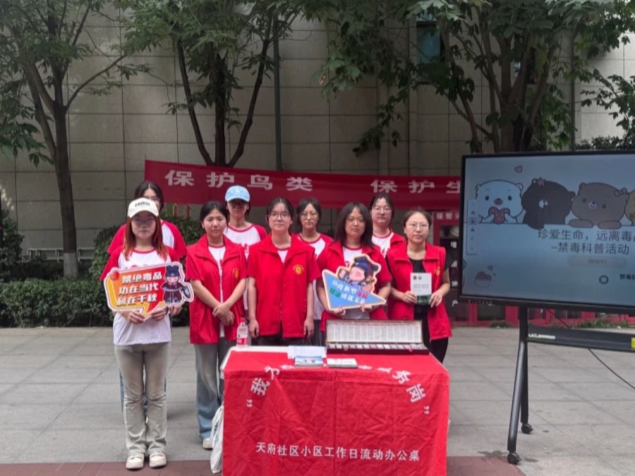 怀揣着提升社区居民对毒品危害认知的责任感,宣讲队走进天府社区开展“禁毒进社区,平安共守护”宣传活动。队员们通过设置毒品模型展示、发放宣传手册、现场宣讲,VR互动体验等方式,向居民讲解毒品的种类、危害及防范技巧;结合禁毒知识,用通俗易懂的语言拆解新型毒品的伪装术,并分享真实案例警示大家提高警惕。此次社区宣讲让不少居民表示:“以前总觉得毒品离我们很远,现在才知道要时刻绷紧防范这根弦”。