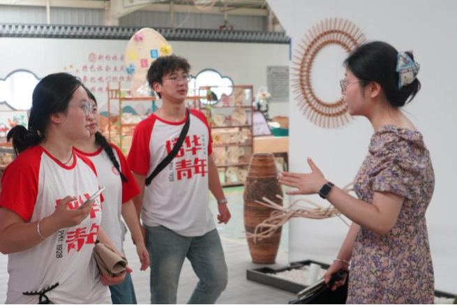 走进文化中心,空气中弥漫着淡淡的藤条清香。在非遗传承人的引导下,队员们沿着展陈长廊,一步步了解黄官藤编的历史渊源与工艺精髓。
