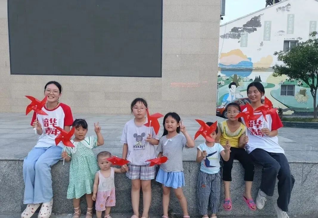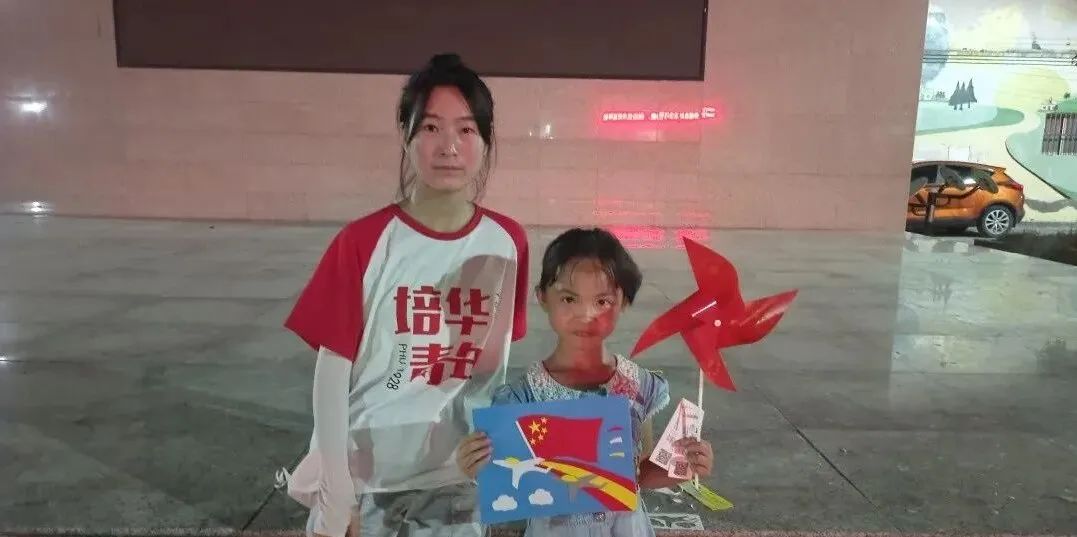 晚风轻拂,月牙稍挂,孩童微笑。为了与村民进一步交流,实践队在广场上进行了一系列友谊交流活动。活动后,将精心准备的小风车和具有实践队特色的书签分发给周围小朋友,同时在广场上与小朋友们一起制作了爱国系列的手工贴画,让小朋友们积极参与其中。热闹的氛围,耐心的队员,使小朋友的脸上也洋溢着开怀的笑容。