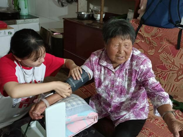 图为成员为村民测量血压