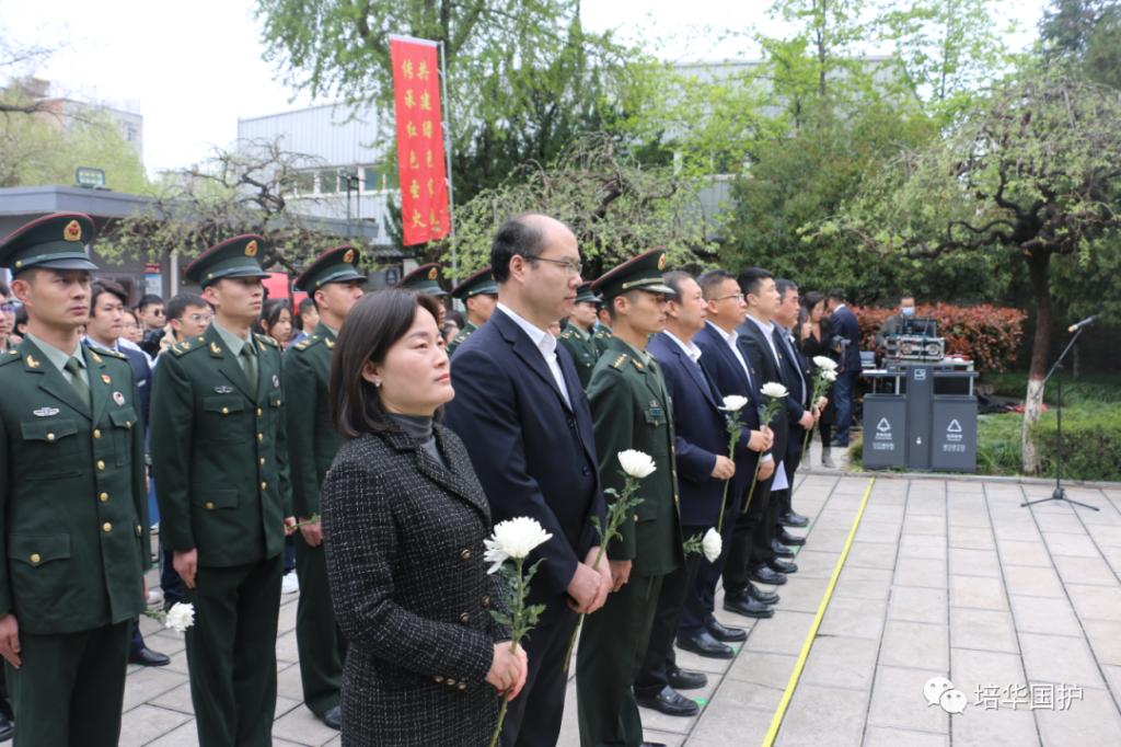 4月4日上午,在清明节到来之际,为悼念革命先烈,传承英雄精神,让青年一代继承先烈的光荣传统,弘扬民族精神,发扬先烈遗志,西安培华学院国旗护卫队参加了由团区委联合区委文明办、区教育局、区退役军人事务局、西安培华学院团委在西安市长安区杨虎城将军陵园举办的“清明祭英烈,共铸中华魂"爱国主义教育活动。