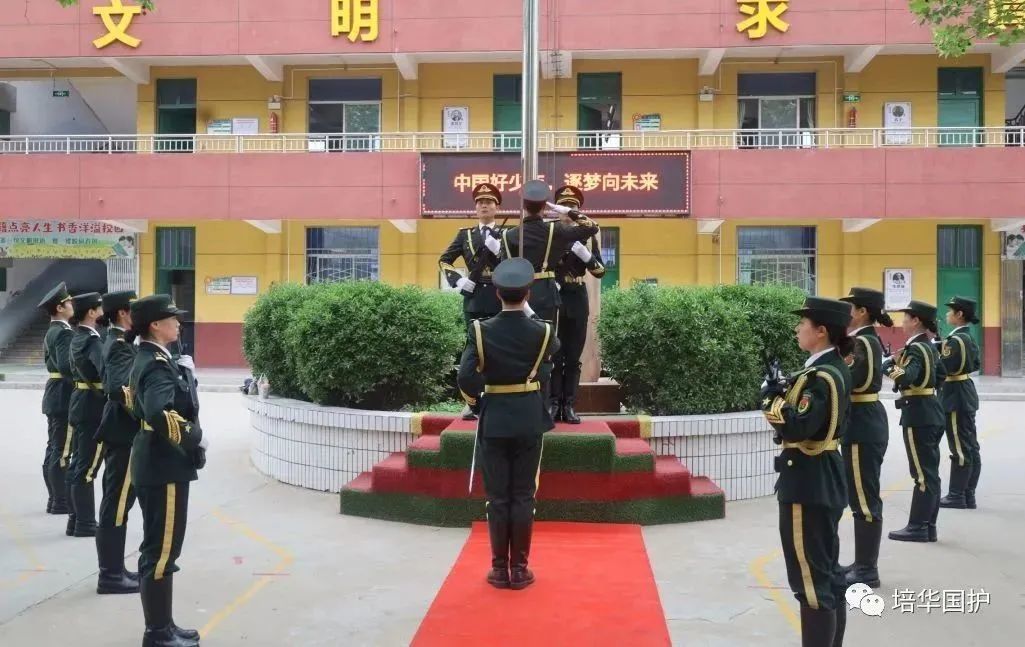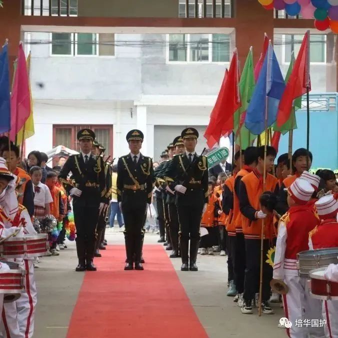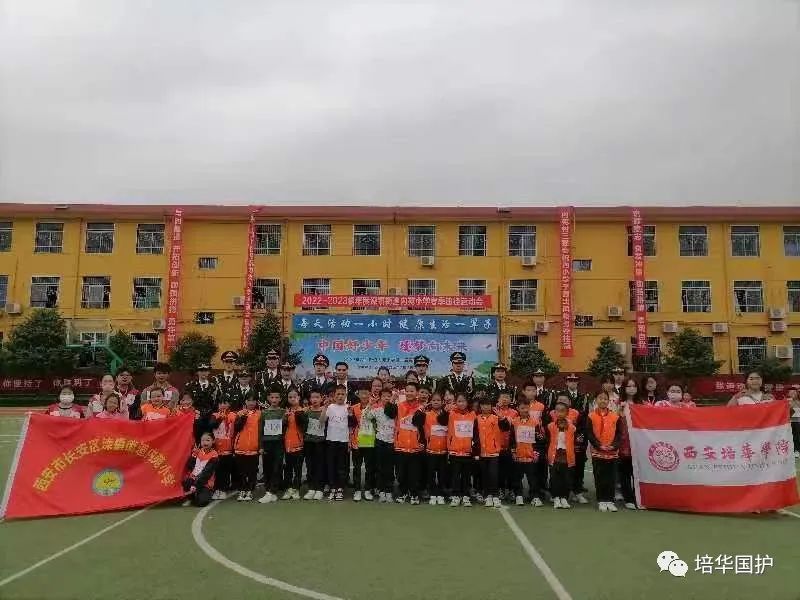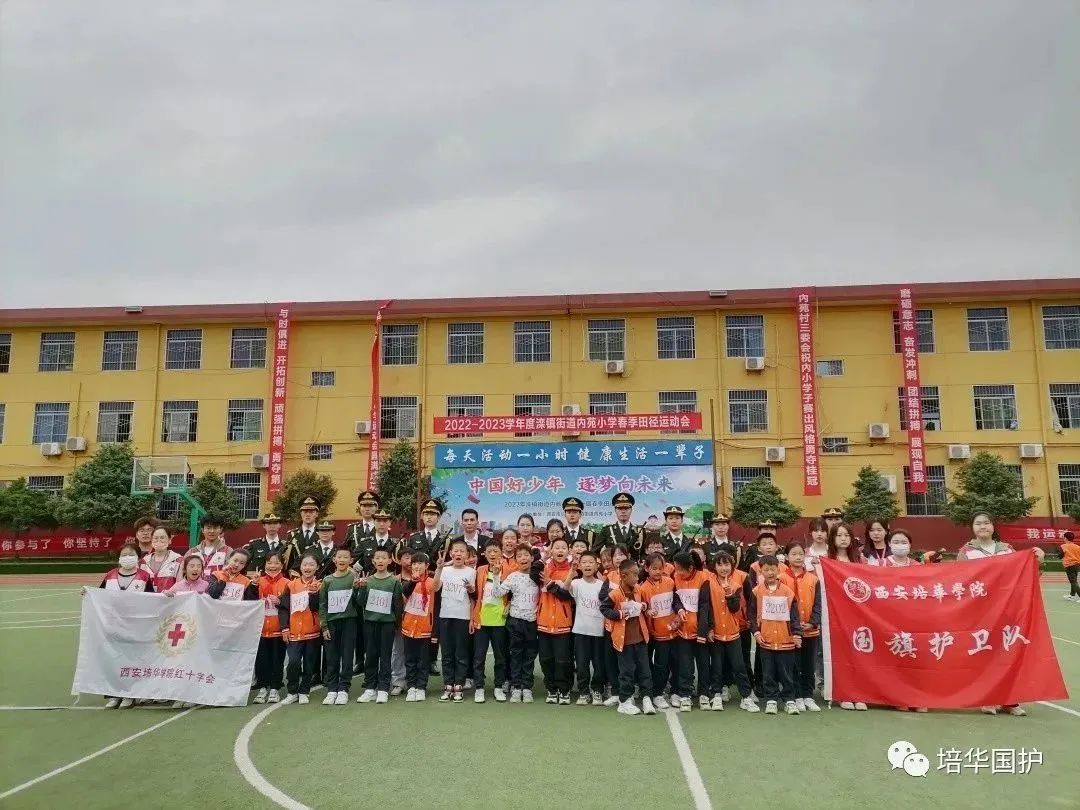 在生机勃勃的春天,在迎风招展的红旗下,西安培华学院国旗护卫队与学校红十字会受邀参加滦镇街道内苑小学春季运动会开幕式。