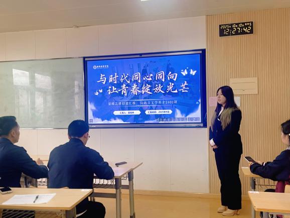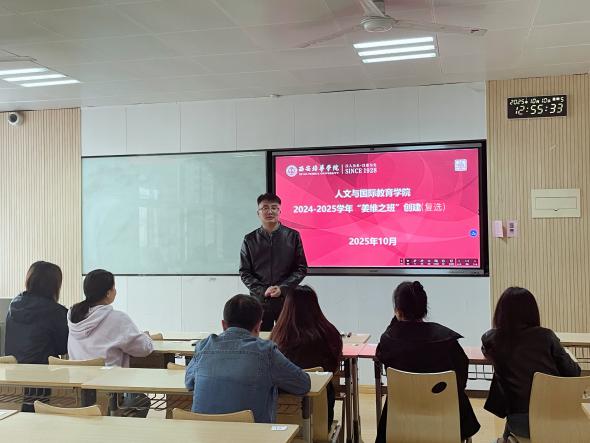 为持续推进“姜维之班”创建工作走深走实,进一步弘扬 “ 维之精神 ” , 文 学院于 10月10日中午在格物楼 顺利举行2024-2025学年“姜维之班”创建 阶段性成果评议会 。学院党委书记兼副院长南兵、党委副书记王伟平 及全体 辅导员组成评审团,对 相关 班级进行综合评价。