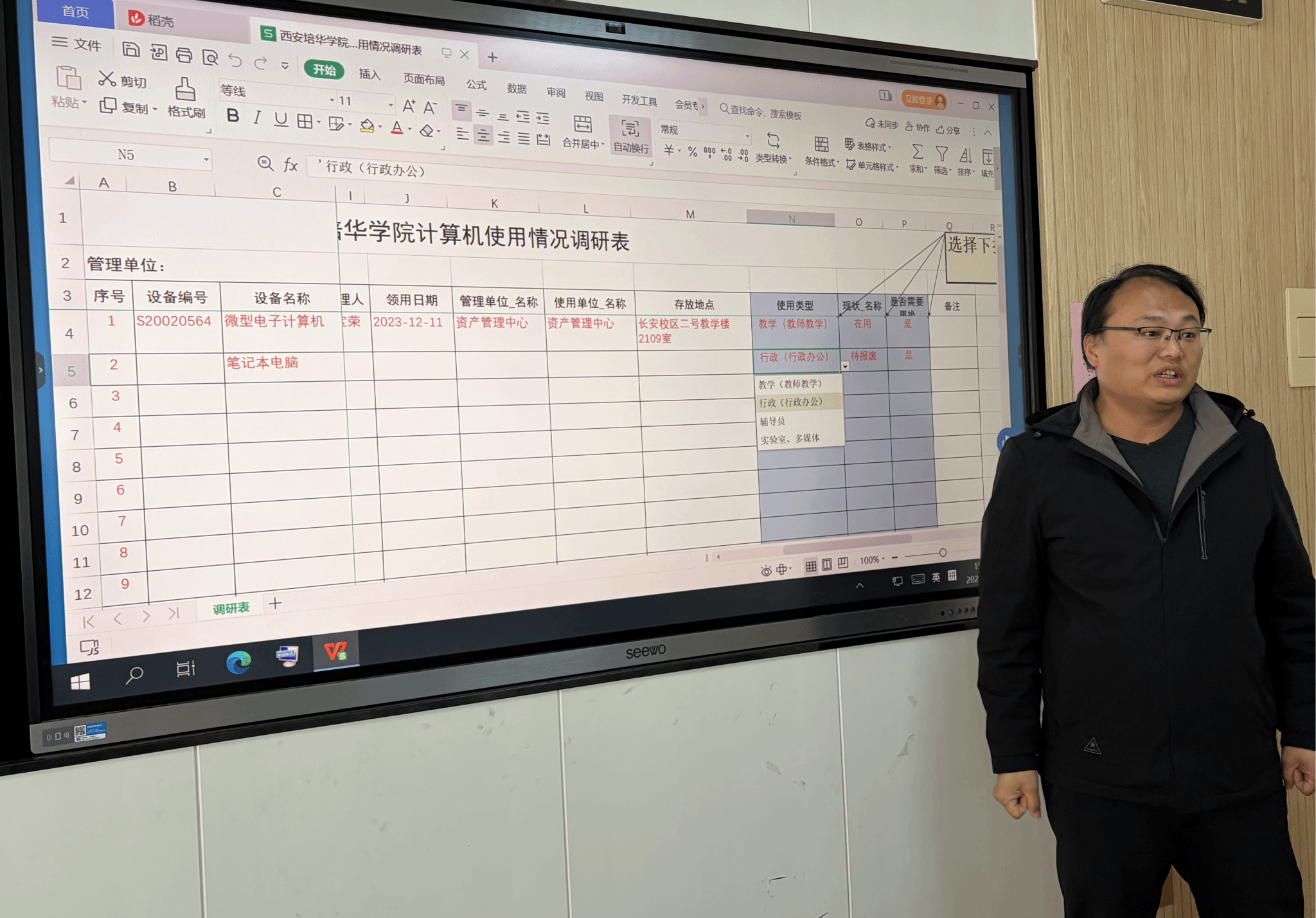 会上,刘斌副主任首先介绍了实验室建设与设备管理中心的核心职责、内部人员分工,明确了部门与各二级学院的工作对接安排,为后续各项实验管理工作高效、有序推进奠定了坚实基础。随后,各相关负责老师分别开展专题讲解:李婧老师围绕实验(训)室使用、教学设备报修、会议室管理三大板块,详细解读了各环节的操作规范、审批流程与责任分工,并对实验技术及管理人员统计表、实验实训室一览表、虚拟仿真实验(训)教学项目一览表的统计工作作了具体部署与说明;张嘉冕老师对实验室安全管理工作进行全面梳理,强调了安全管理的重点环节和注意事项;芦伟老师就实验(训)室、多媒体教室计算机使用情况线上调研工作的开展流程、填报要求等进行了详细指导。