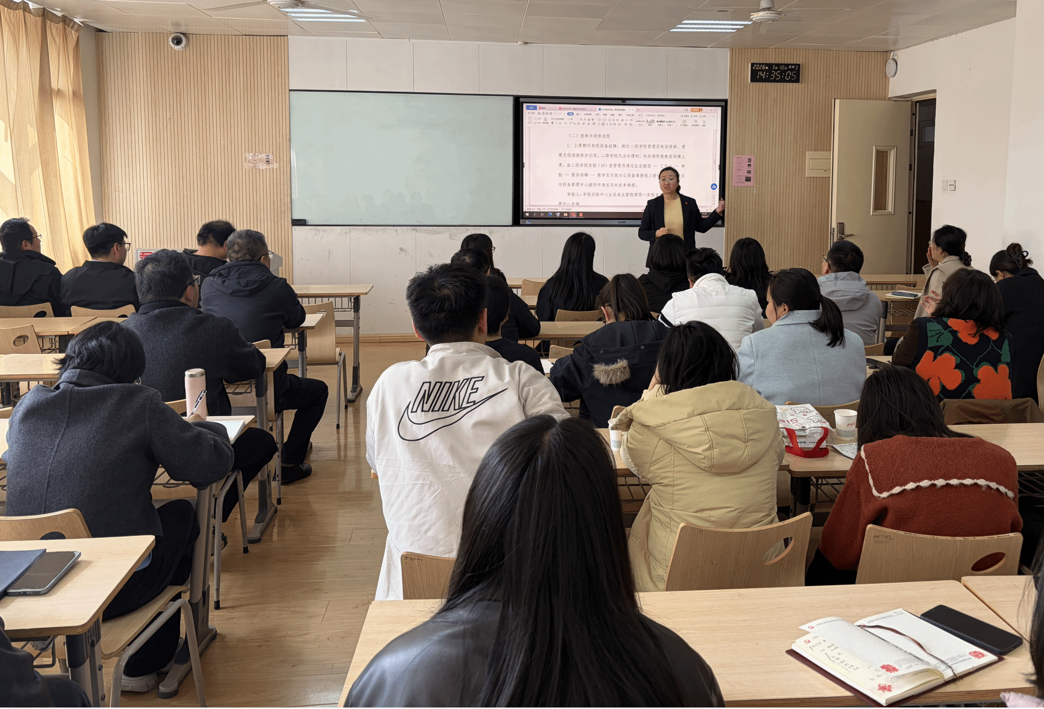 为进一步规范我校实验管理工作、理顺管理流程、强化服务保障,2026年3月18日下午,我校召开2026年实验管理工作培训会。会议主要明确实验(训)室使用、教学设备报修、会议室管理等各环节审批流程,部署实验室安全管理、全校实验(训)室及多媒体教室计算机数据统计等重点工作,保障教学、科研及各类会议活动有序开展。