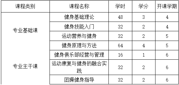 基础课程:健身基础理论、健身技能入门、运动营养与健身。