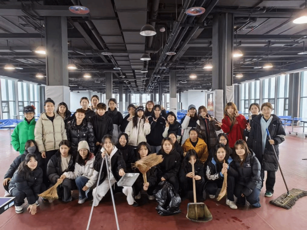 在体育场地的打扫环节,一百余名学生组成“清洁特攻队”,对羽毛球场、乒乓球场和体操教室进行深度清洁。他们分工明确,确保每个区域都达到干净整洁的要求。学生们通过实际劳动,深刻体会到日常体育场地维护的辛苦与重要性。