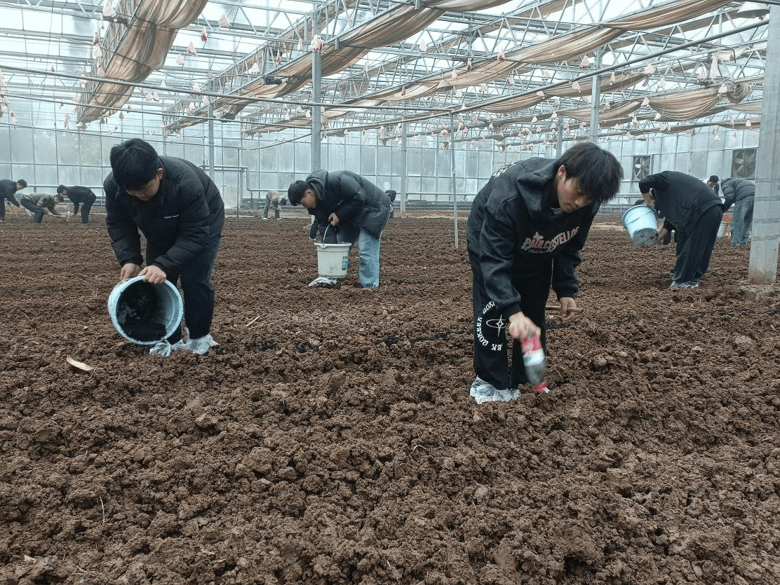 与此同时,校内实践田的露天种植区同样热闹非凡。26名学生在专项教师带领下,采用传统耕作法种植小白菜。学生们分两组进行轮换:一组负责开垦荒地、平整土地,另一组负责播种与施肥。体育教育专业学生将体能训练中的“间歇跑”理念融入劳动节奏,通过循环作业模式,既保证劳动效率又避免过度疲劳。
