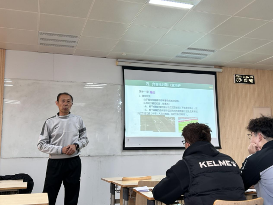开班首日,西安市足球协会董坤讲师现场授课。在室内理论教学环节,借助多媒体设备,结合丰富的案例,向学员们详细讲解足球竞赛规则。例如,在剖析竞赛规则第11章“越位”时,不仅阐述了越位的定义,还通过视频片段展示实际比赛中的越位场景,让学员们能更好地理解和判断。
