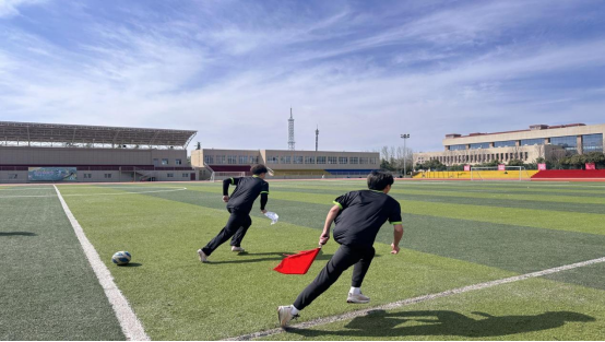 在室外实践课程中,学员们在绿茵场上积极参与实操训练。他们手持裁判旗,模拟比赛中的各种场景,进行跑位和判罚练习。讲师则在一旁实时指导,纠正学员们在动作规范、判罚尺度把握等方面的问题,帮助学员们将理论知识与实际操作相结合。