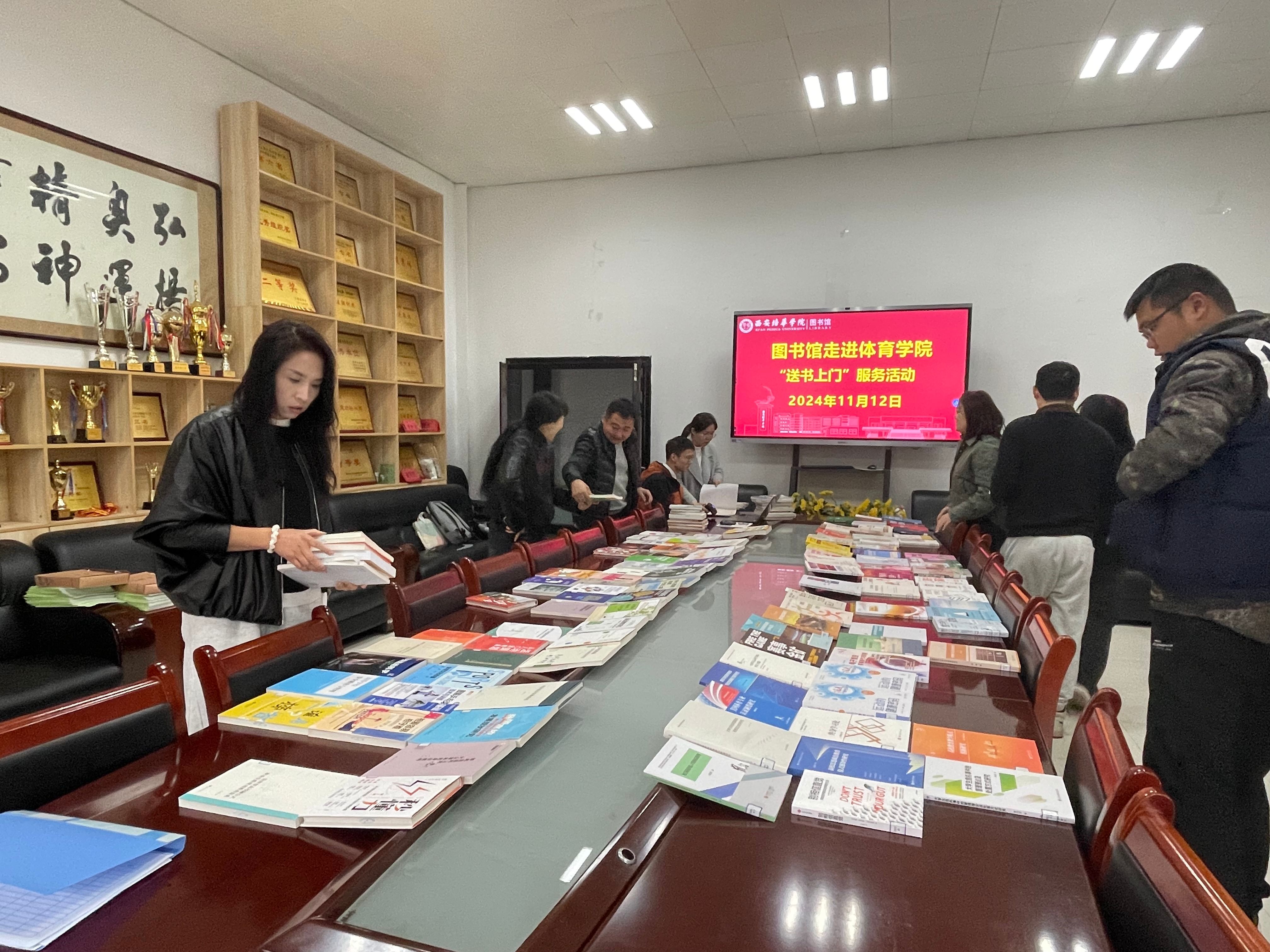 2024年11月12日,一场充满温暖与关怀的送书上门服务活动在体育学院成功举办。体育学院与图书馆携手合作,为体育学院的老师们带来了一场知识的盛宴。