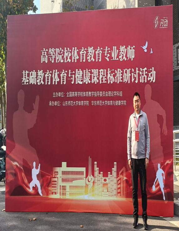 11月6日—9日,由全国高等学校体育教学指导委员会理论学科组主办,山东师范大学体育学院、华东师范大学体育与健康学院承办的全国高等院校体育教育专业教师基础教育体育与健康课程标准研讨会在山东师范大学长清湖校区举办。这是首次在高等院校体育教育专业教师中开展基础教育体育与健康课程标准的研讨。我校校体委主任徐国富和体育学院教师刘毅参加本次研讨会。
