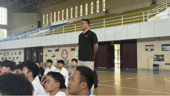 随后,特邀教师闫道明详细介绍了实习的具体安排和要求。他指出,本次实习将分为校内培训和实习基地实操两个阶段,为期八天的校内培训将由他和张战涛老师共同负责,培训内容包括口令、队列队形、徒手操等专业技能。闫老师还强调了实习期间的纪律要求,希望同学们严格遵守规章制度,展现出体育学院学生的良好风貌。