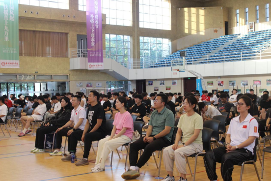 随后,体操世界冠军董振东登台发言。他分享了自己在体操领域的拼搏历程、训练感悟以及夺冠背后的传奇故事,其坚韧不拔的意志和卓越非凡的成就,深深震撼了在场的每一位师生。董振东鼓励同学们要大胆追逐自己的梦想,持之以恒地努力奋进,让体育精神在校园里熠熠生辉。