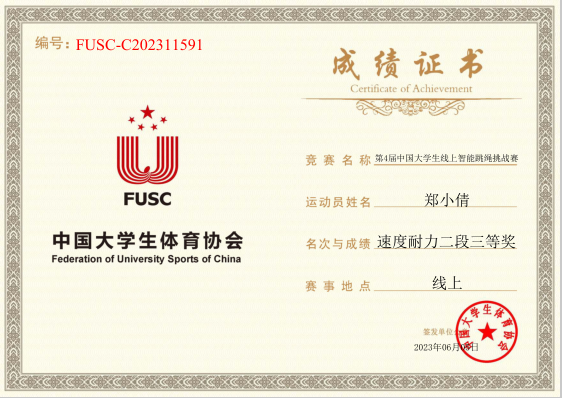 为促进跳绳运动在全国各地的普及和发展,2023年4月24日—5月14日,中国大学生体育协会线上举办了第4届中国大学生线上智能跳绳挑战赛。