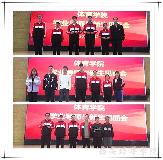 为促进学生大学生涯得到全面发展,进一步帮助学生树立良好的人生观、价值观、就业观,充分发挥教师对学生学业上的指导,思想、生活上的关爱,体现姜波理事长提出的“以人为本”的教育理念,体育学院建立了首届学业导师制。于2020年10月20日中午,在西安培华学院体育馆举行了学业导师与新生见面会。会议由体育学院2020级辅导员陈新华老师主持。