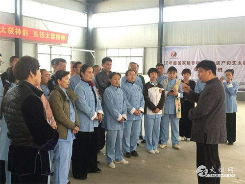 2018年4月4日,国家级非物质文化遗产项目和式太极拳春季培训班开班仪式在温县和式太极拳学院举行。出席本次开班仪式特邀嘉宾有:鹤壁市文广新局副局长杨剑卫、原焦作市政协副主席和金贵、西安培华学院体育中心太极拳俱乐部主任黄慧、襄阳市太极拳协会会长马五等。