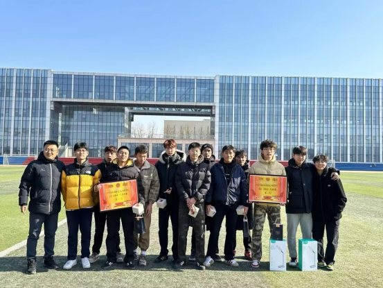 表彰大会上,大学体育教学部副部长杜峰对专项比赛进行回顾总结,肯定了同学们在赛场上的出色表现,三场赛事竞争激烈,选手们尽显体育风采。接着,专业教学部部长张恒和综合教研室主任金马宣读获奖名单,足球、篮球比赛的冠亚季军队伍,武术比赛各奖项获得者依次产生。随后,张恒部长与丁景阳教师为获奖选手颁发证书和奖品,现场掌声雷动。