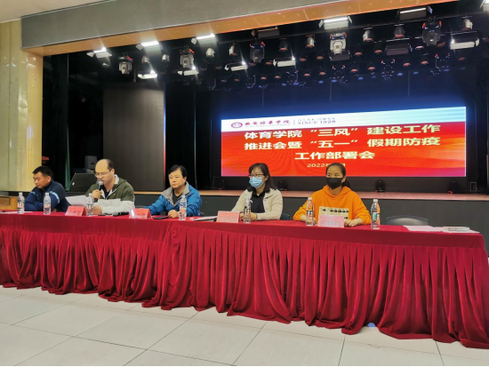 学风是校风的重要内容,是学校治学态度、治学原则、治学水平的综合体现,也是保持学院可持续发展的根本。值此五一假期,为疫情期间做好防疫工作的同时,进一步落实我院的教风、学风,工作风,“三风”建设工作,体育学院于4月29日中午在大学生活动中心组织开展了“三风“建设工作推进会暨五一假期防疫工作部署会议。