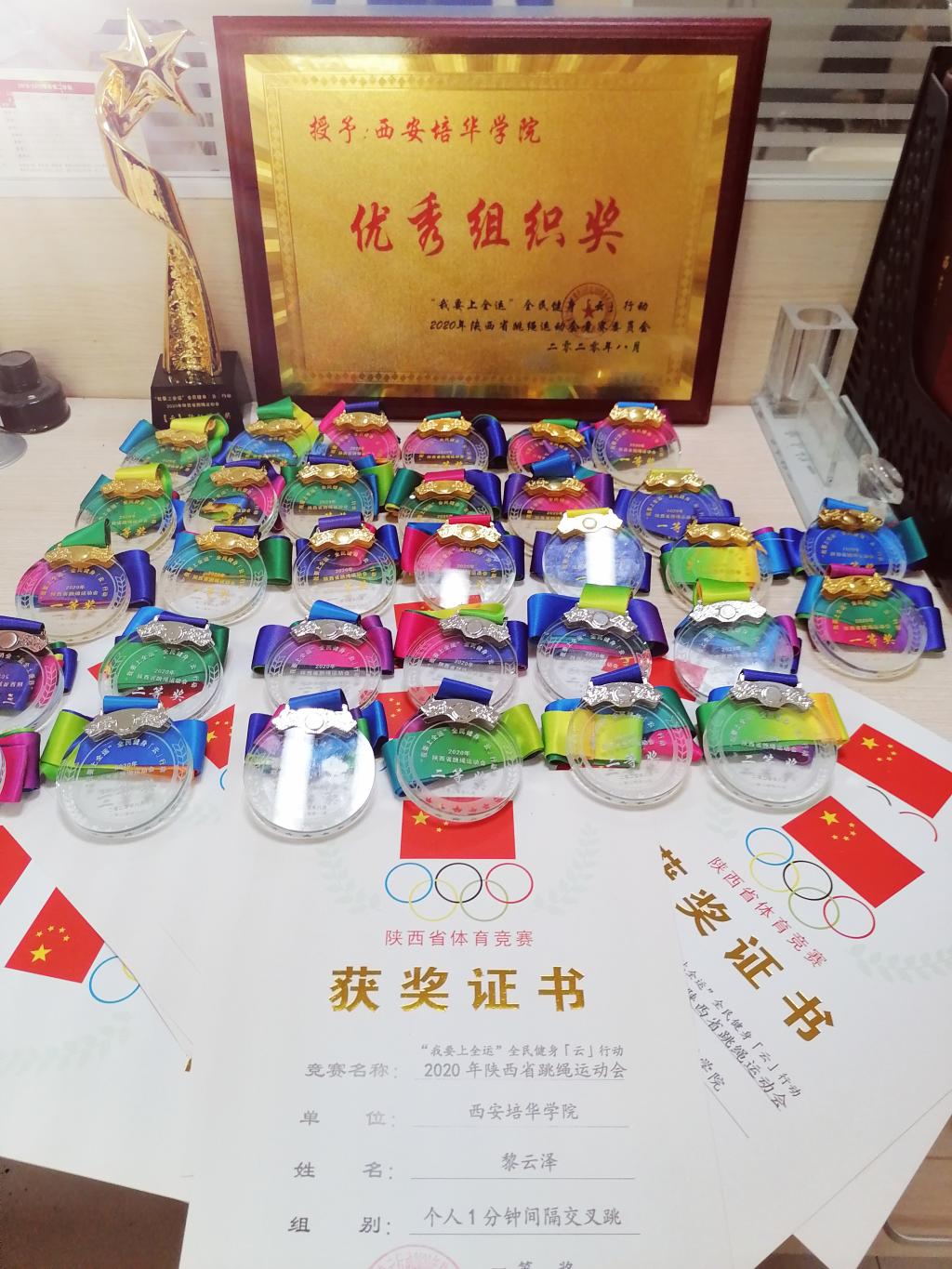 2020年3月,体育学院成立花样跳绳俱乐部,开设花样跳绳课程并积极组建西安培华学院花样跳绳代表队,在全校范围内吸纳花样跳绳爱好者和跳绳特长生,积极参加各类表演活动,及省、国家各级赛事。目前为止,西安培华学院花样跳绳代表队共获得省级荣誉44项、国家级荣誉22项,成绩优异,收获颇丰。