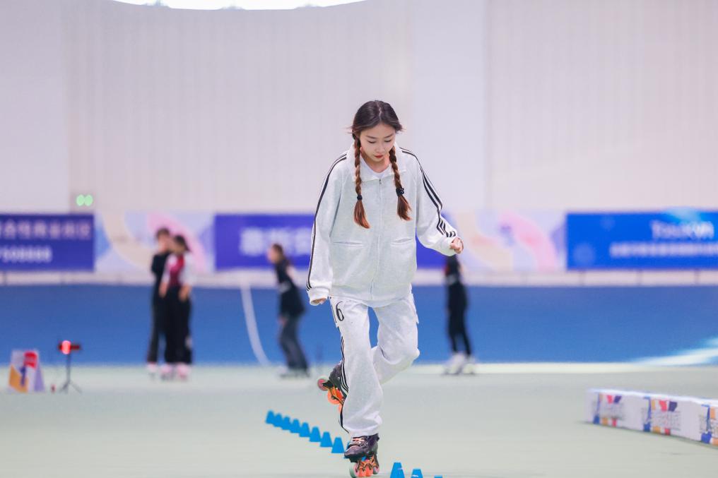 我校轮滑代表队经过层层选拔,共选派出四名运动员参加了200米计时赛、花式绕桩、速度过桩项目,与世锦赛冠军朱思怡、世界冠军刘佳欣等选手同场竞技,经过三天半的激烈角逐,我校队员在比赛中沉着冷静、不畏强手、顽强拼搏,实现了自我突破。