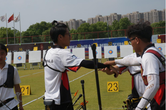赛场上,我校运动员们屏息凝神,站位、搭箭、扣弦、预拉等动作一气呵成,一道道离弦之箭飞快射向靶心,运动员们冷静沉着的态度、精准高效的判断,彰显了培华学子们奋勇向前、坚韧不拔的精神风貌。在前两个比赛日发挥出色, 男队三人、女队两人挺进全国八强。在最后两日的团体淘汰赛中,西安培华学院代表队队员们密切配合,紧密团结,齐心协力,展现出了卓越的团体实力和出色的射箭技巧。他们每一箭都准确无误地击中目标,展现出了高超的射箭水准和稳定的心态。