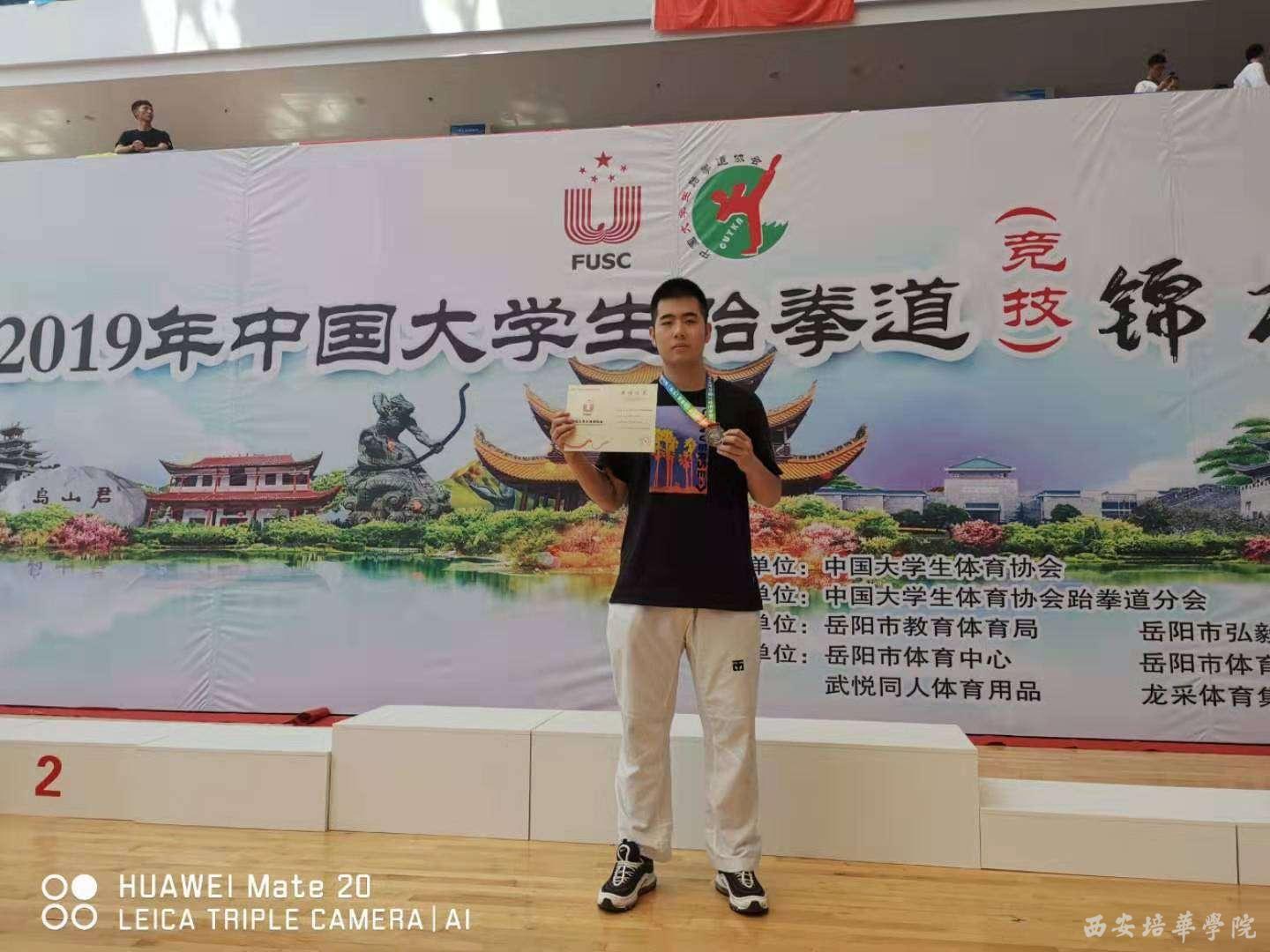 比赛在湖南省岳阳市奥体体育中心举行,我校跆拳道代表队共有4名队员组建,参加了本次比赛,寇智鑫同学在克服种种困难下,顽强拼搏,最終获得男子甲组87kg+级别第二名。 这是我校参赛以来最好成绩,通过本次比赛,充分的展示了我培华学子奋勇拼搏、团结进取的阳光形象。