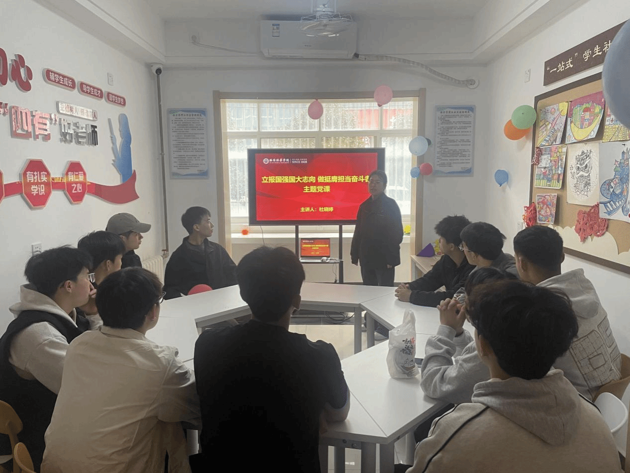 在“信念培根”层面,党支部开展了专题主题党日活动。杜晓婷书记以“立志做新时代挺膺担当的奋斗者”为主题,为全体学生党员讲授专题党课。党课通过重温入党誓词、学习先进典型、开展座谈交流等形式,引导学生党员深刻领会“立报国强国大志向”的时代内涵,要求大家将个人理想融入国家发展大局。辅导员雍笑笑组织各班级召开"青春献礼新时代,强国有我新征程"主题班会,组织学生学习新时代先进人物事迹。辅导员霍逸凡则通过线上主题班会,结合学生专业特点开展职业生涯规划指导。