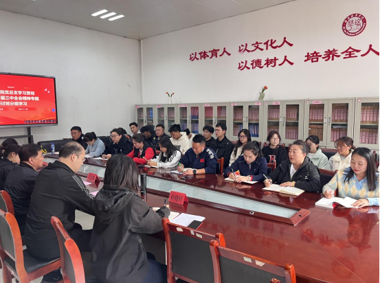 11月6日-11月7日下午,体育学院党总支在体育学院二楼党员活动室组织召开学习贯彻党的二十届三中全会精神专题研讨班分组学习会议。西安培华学院体育学院王志强院长、体育学院党总支成员、学生党支部书记、体育学院全体教师党员、学生党员、积极分子参与此次学习,会议由体育学院党总支书记兼行政副院长马德厚同志主持。