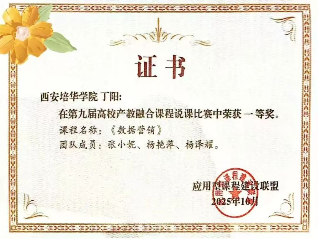 《数据营销》课程团队以产教融合为导向,将企业真实案例与教学内容深度结合,通过企业导师参与、实践项目训练和校内外实践基地建设等方式,不断提升课程的实践性与应用性。此次在全国赛事中获得总分第一,不仅体现了课程建设的成果,也展现了学院在推进应用型人才培养和深化产教融合方面取得的积极进展。