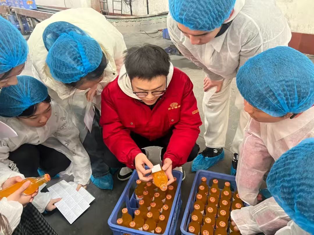 在访企交流基础上,学院同步组织师生开展企业研学活动。在企业负责人的带领下,学生走进企业文化展示空间与生产车间,系统了解品牌发展历程及现代化生产流程,对食品饮料行业的标准化与智能化发展形成直观认知。
