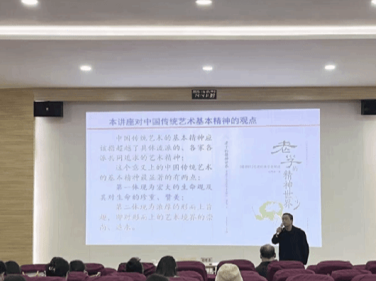 何为“形而上旨趣”?赵维森教授用通俗的语言拆解这一学术概念:“它就像艺术的‘精神翅膀’,轻视物质的束缚,偏爱抽象境界的自由。”他从儒家的精神追求、道家的“重神轻形”与“无之用”,讲到绘画的留白、音乐的余韵、文学的言外意,将抽象哲思化作一个个艺术场景,让听众瞬间领悟其中妙味。而这一切的根源,都指向老子《道德经》中那神秘的“道”——它“视之不见,听之不闻”,却蕴含着创生万物的无穷能量。
