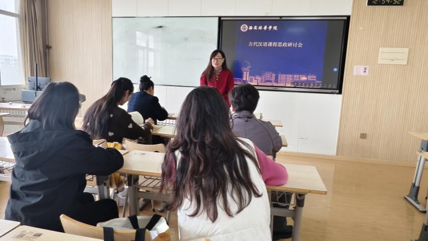 2025年11月5日,古代汉语课程组在1601教室举行了课程思政研讨会。此次会议围绕习近平文化思想融入古代汉语课程的内容和方式展开,旨在深入挖掘古代汉语课程相关的思政元素,并讨论如何融入实践活动,提升课程育人效果。