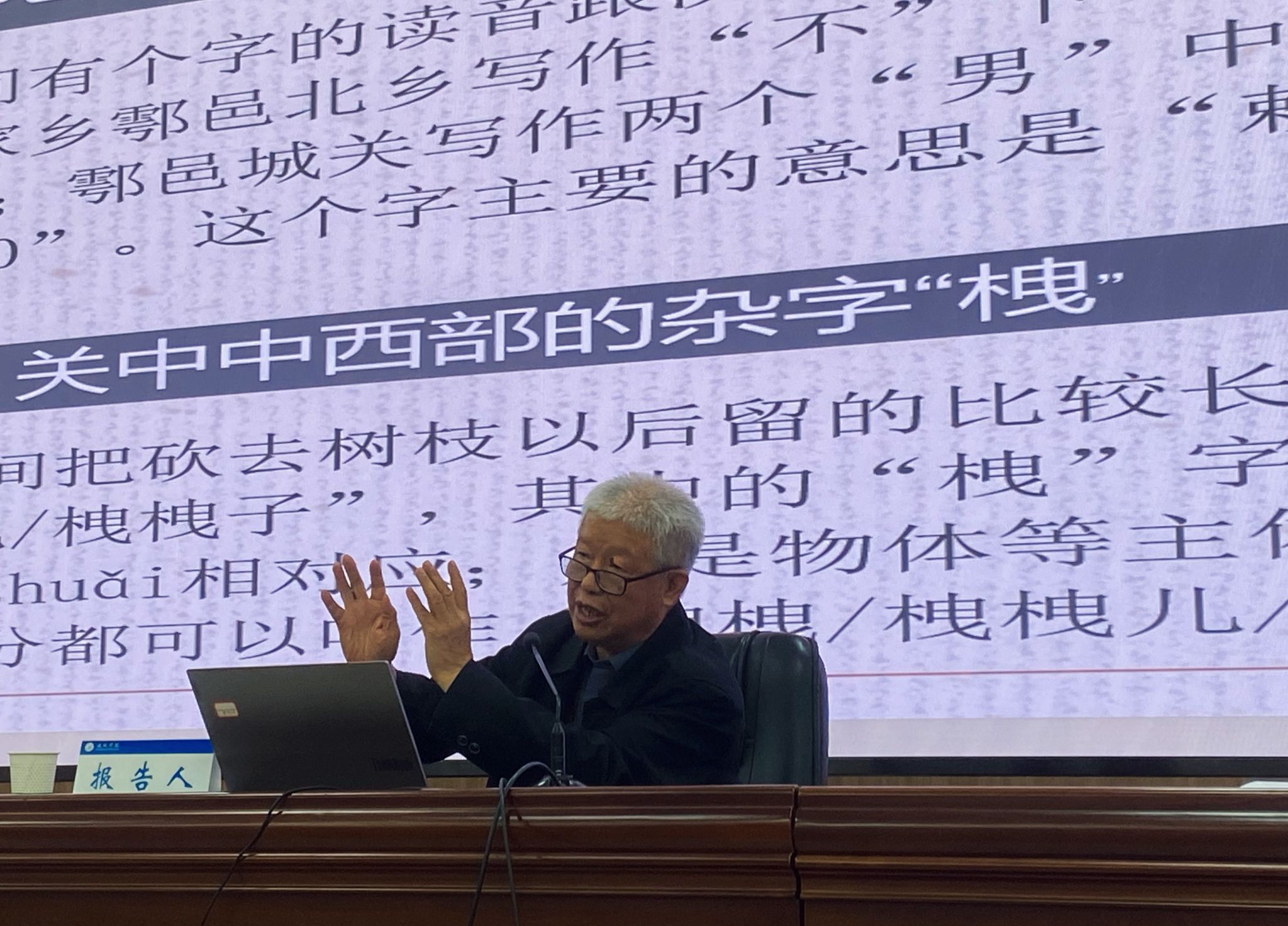 2025年10月31日—11月2日,首届民间杂字学术讨论会在运城学院隆重举行,来自全国40多所大学、科研机构、出版社、杂志社的80多位专家学者以及运城学院师生七八百人参加了这次学术盛会。我校文学院教授孙立新以《关中民间杂字略说》为题,对关中民间普遍使用的15个杂字的造字理据、音义特征、地域分布等情况进行了大会发言。孙教授从文字类型学角度研究讨论了这些关中方言区的民间杂字,如关中中东部有的方言点“娘”的口语音nüó指祖母或曾祖母,当地人不知道nüó是口语音,就造了一个“从女虐声”的杂字;近一半是合音字在民间相应的杂字或无本字的杂字,如合音字“嫑”。孙教授指出:“不要”的合音字“嫑”属于关中民间阻断词,跟北京话的“甭”不是一回事,因为“不用”的合音字“甭”不是阻断词。还有,无本字的杂字如关中中西部有关方言点指称踝骨时用到一个杂字“栧”,而鄠邑民间把砍去树枝以后留的比较长的短截叫作“栧栧、栧栧儿、栧栧子”;鄠邑对于“栧”字的读音,翻译成为汉语拼音字母是zhuǎi。改革开放以前,关中民间包括知识分子大量地用到了“从口片声”的杂字“!”。改革开放以后,有学者考证出杂字“!”的本字是“谝piǎn”,于是,杂字“!”逐渐淡出人们的视野。关中方言“谝”字的语义主要有。①聊天叫作“谝闲传”,或者简称“谝”;②吹嘘,言过其实甚至胡说八道,关中民间的俗成语如“胡吹乱谝/胡吹浪谝”指漫无边际地胡乱吹嘘;③凤翔一带把很糟糕、很令人失望、尴尬叫作“谝匝啦”。考据内容如,《说文·言部》曰:“谝,便巧言也。”《玉篇·言部》:“谝,步连、符善二切,巧佞之言也。”《字汇·言部》:“谝,巧言也。”《五方元音》“一天”匏上:“谝,夸也。”