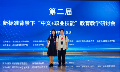 2025年9月27日,第二届“新标准背景下‘中文+职业技能’教育教学研讨会”在深圳职业技术大学隆重召开。本次研讨会由北京语言大学应用中文学院、北京语言大学出版社、深圳职业技术大学、南京工业职业技术大学、北京工业职业技术学院联合主办,山东商务职业学院、济南职业学院、《国际汉语教学研究》编辑部协办,聚焦“中文+职业技能”教育教学前沿议题,吸引了全国多所院校、海外中资企业及相关机构的近300名代表参会。我院中文系汉语国际教育专业教师贾昆诺与周楚君受邀出席,深度参与研讨交流。
