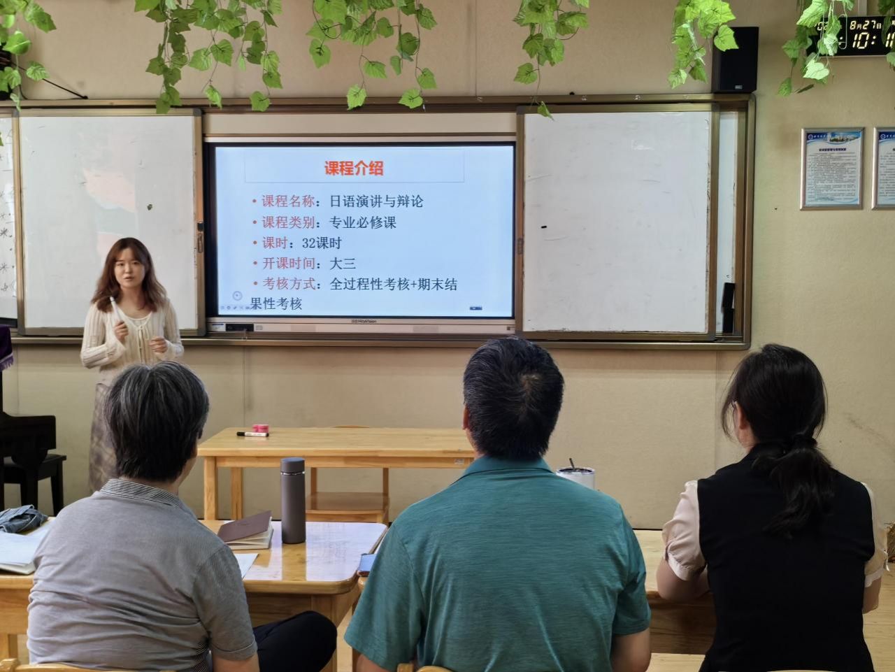 教而不研则浅,研而不教则空。展示环节后的评议是本次磨课活动的精华所在。外语系组织了由系主任、副主任、课程组组长、教学督导组专家及资深教授构成的评审小组,与全体观摩教师一同进行了深入细致的评课研讨。评议过程既肯定了优点,也直指问题。专家们从教学目标设定、教学内容设计、课堂节奏把控、多媒体技术运用、思政元素融入、师生互动实效等多个维度,对每一位教师的展示进行了“切片式”精准剖析。