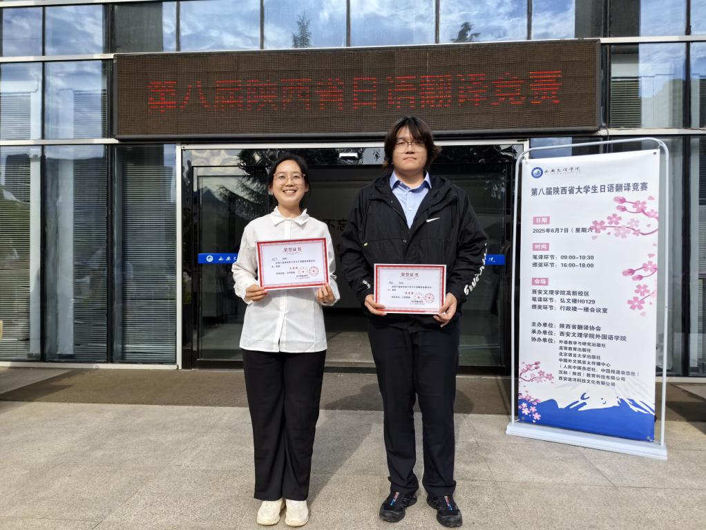 我校人文与国际教育学院外语系日语专业2022级舒蕊同学获三等奖,日语专业2022级黄强同学获得优秀奖。今后日语专业将持续深化日语专业教育教学改革,强化校际合作与行业交流,创新实践教学模式,着力提升学生翻译实践能力与跨文化交际水平,为培育更多高素质、专业化日语翻译人才奠定坚实基础,为推动区域外语教育事业高质量发展贡献积极力量。